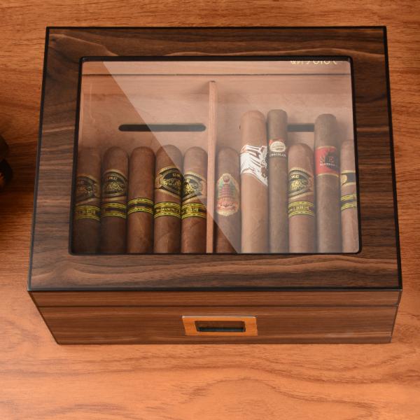 Custom Handmade Cigar Label Printing Glass Top Holds 25 Cigars Spanish Cedar Humidor Images |